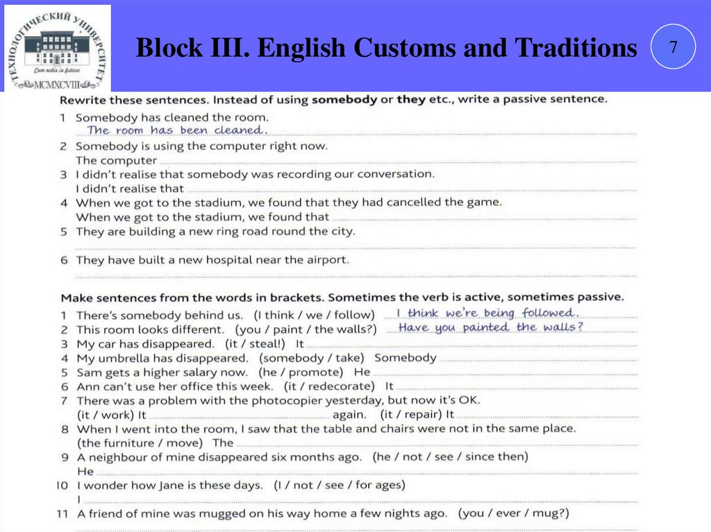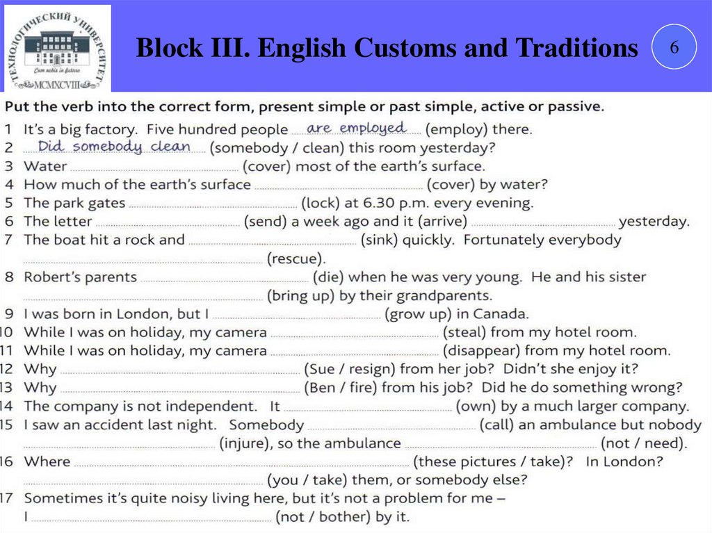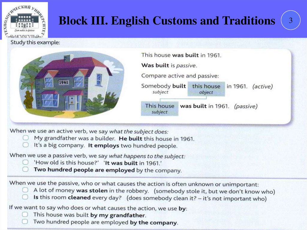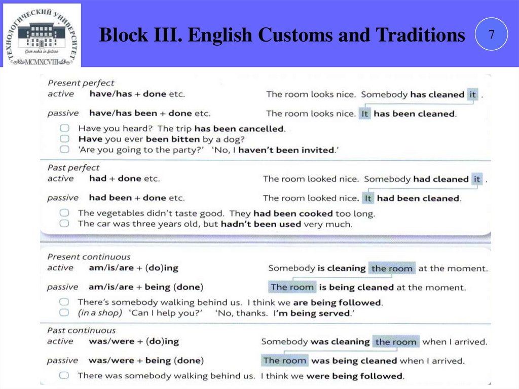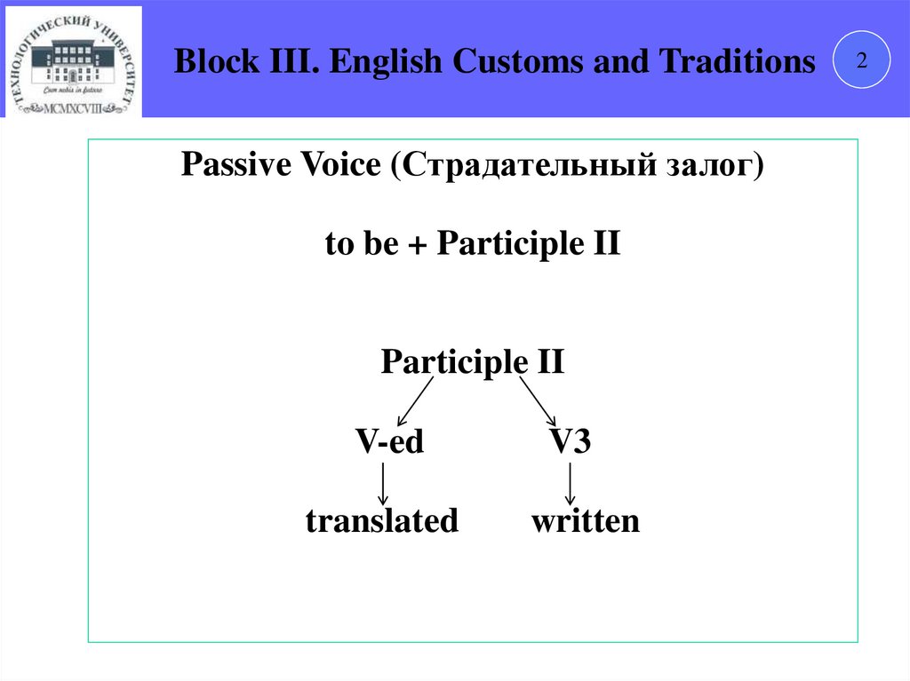 Block III. English Customs and TraditionsPassive Voice (Страдательный залог)
