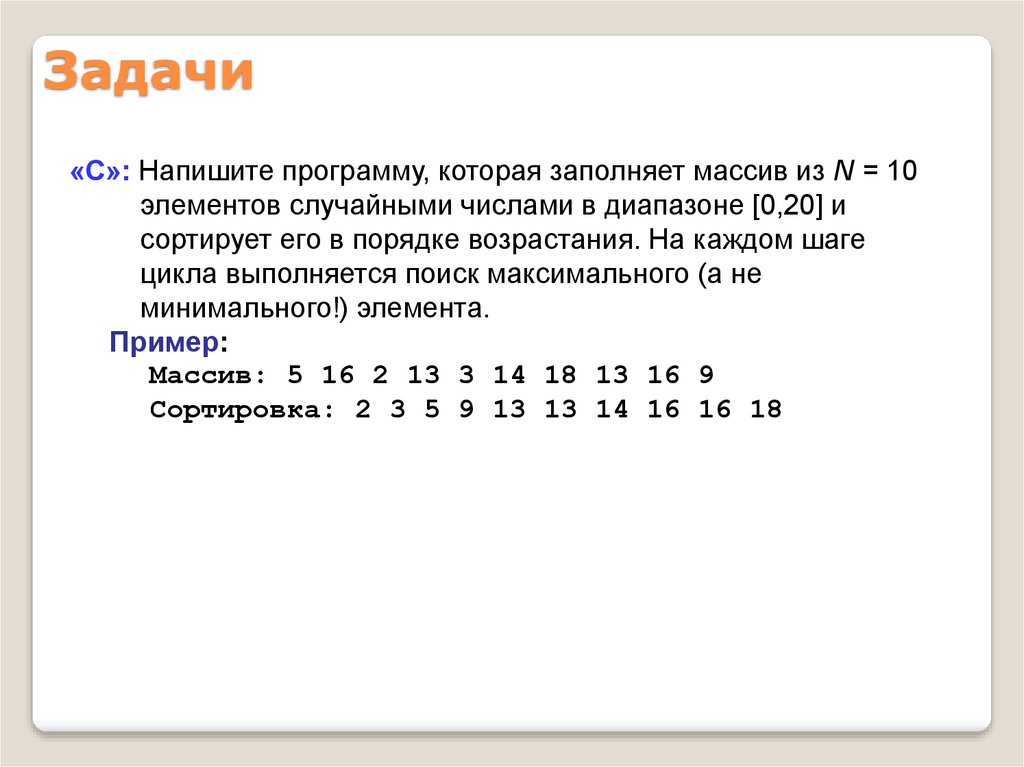Задачи«C»: Напишите программу, которая заполняет массив из N = 10
