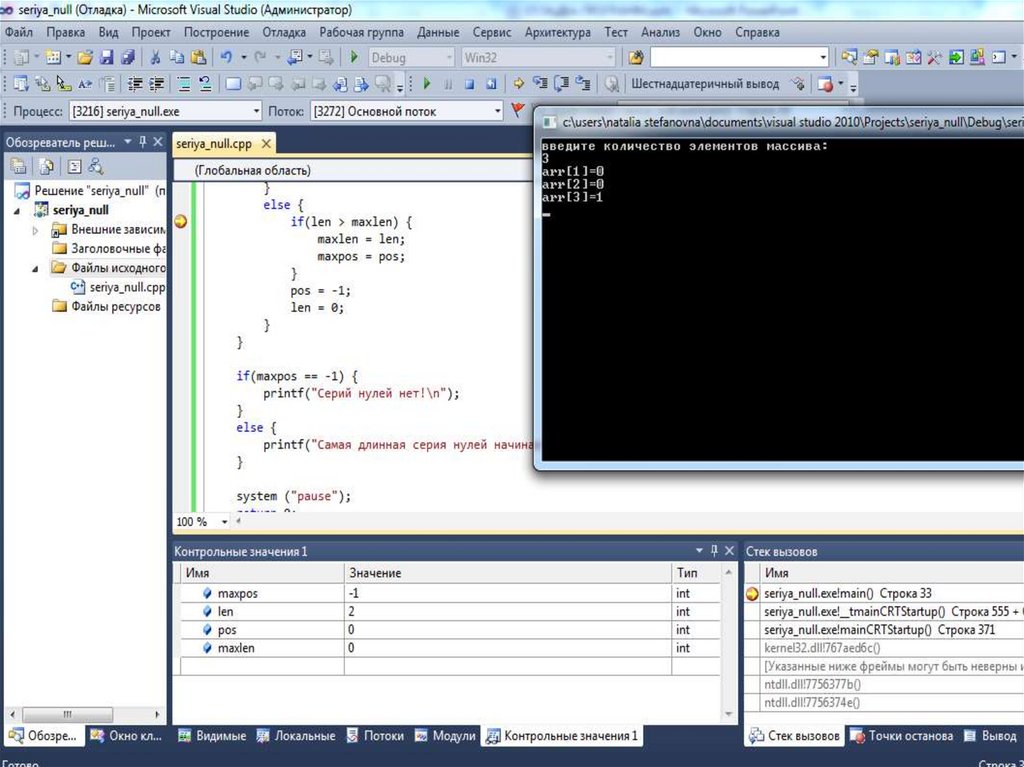72. Отладка однопоточного приложения в Visual Studio 2010