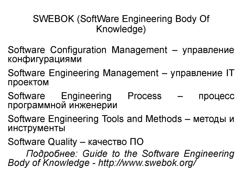 Подробнее: Guide to the Software Engineering