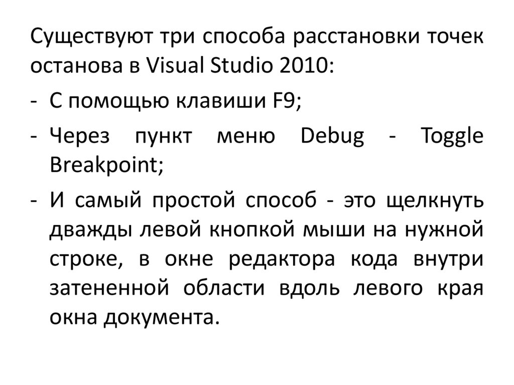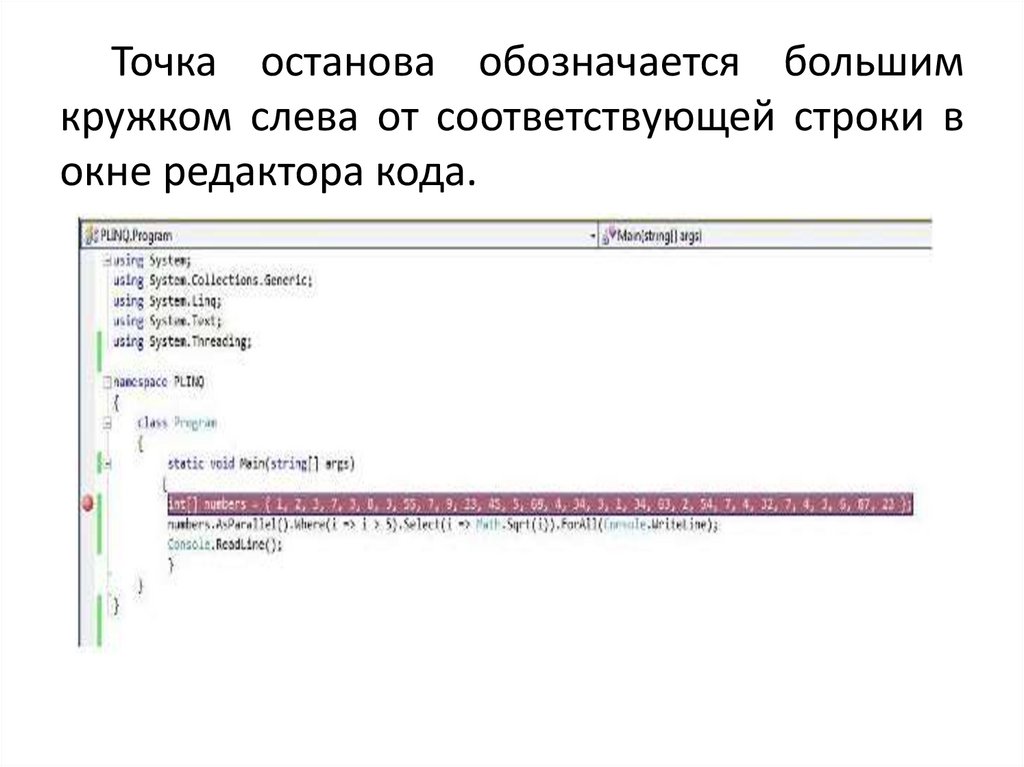 (breakpoints) в программе. В примере
