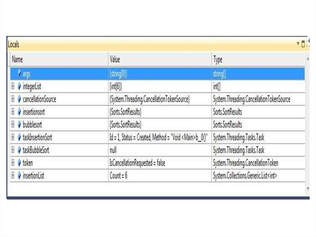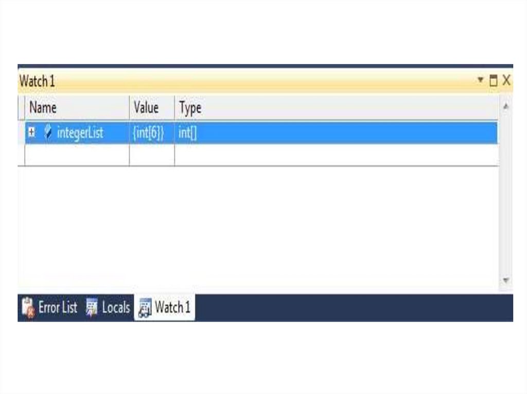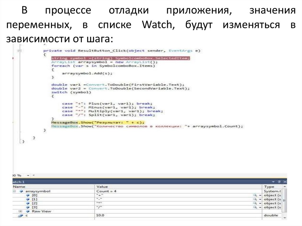 В процессе отладки приложения, значенияпеременных, в списке Watch, будут изменяться в
