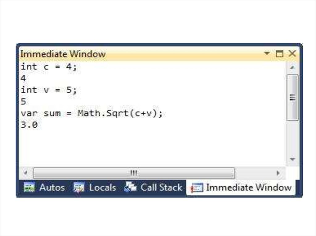 Окно Immediate или непосредственноевыполнение - предназначено для ручного