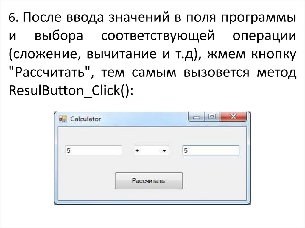 6. После ввода значений в поля программыи выбора соответствующей операции