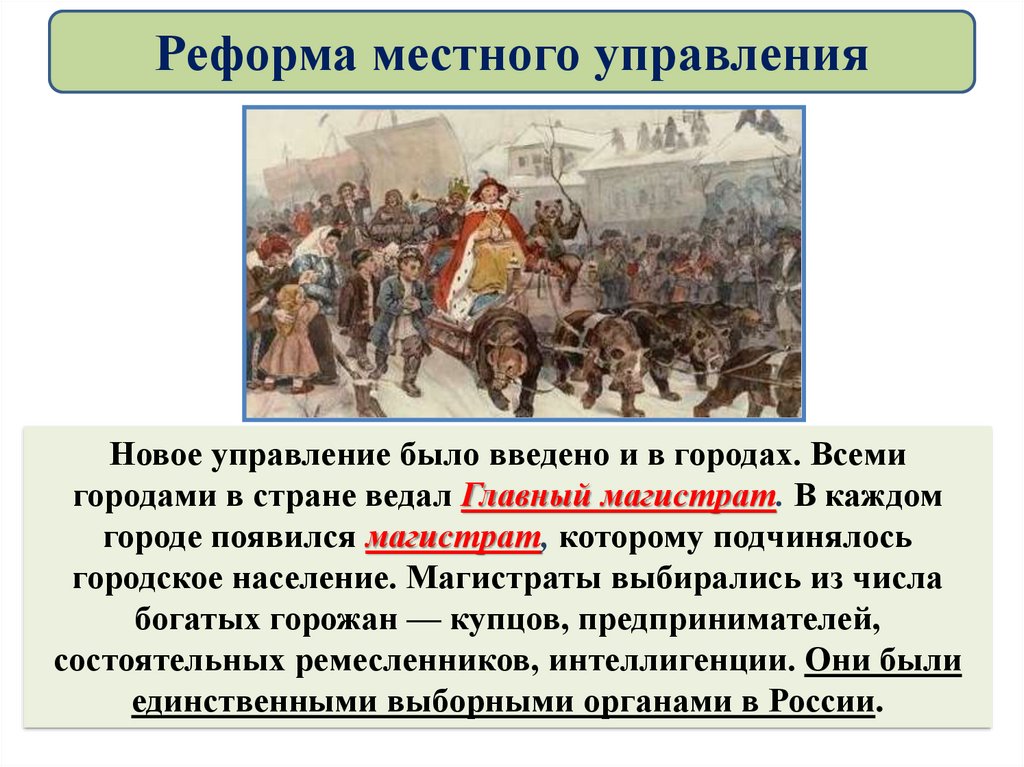 Реформа местного управленияНовое управление было введено и в городах. Всеми