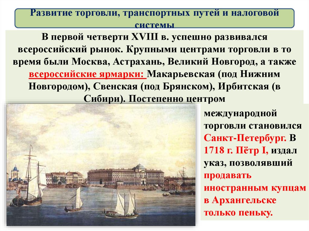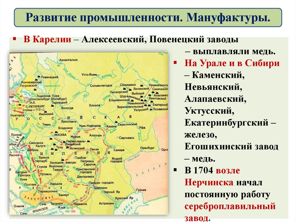Поощрялась государством также и добыча полезныхископаемых. В 1719 г. была издана «Берг-привилегия», по