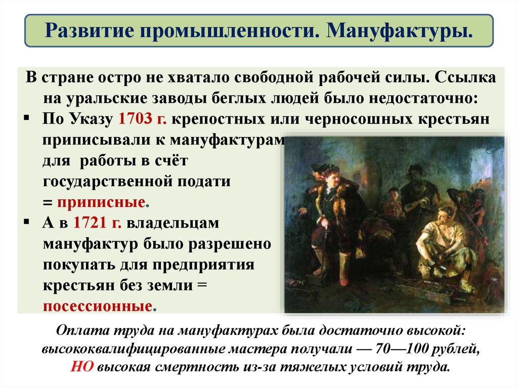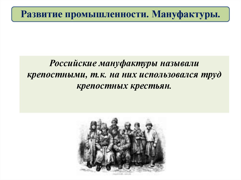 Запоминаем новые словаКрепостная мануфактура — мануфактура, обслуживаемая трудом