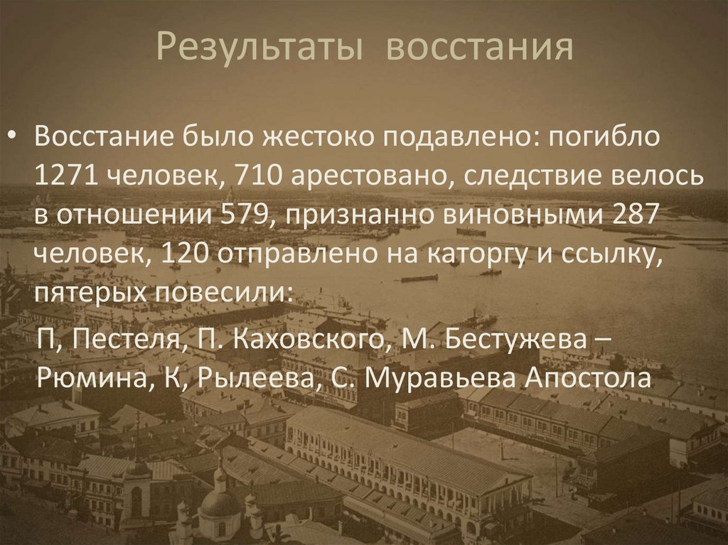 Результаты восстания• Восстание было жестоко подавлено: погибло