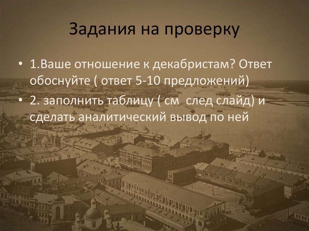 Задания на проверку• 1.Ваше отношение к декабристам? Ответ