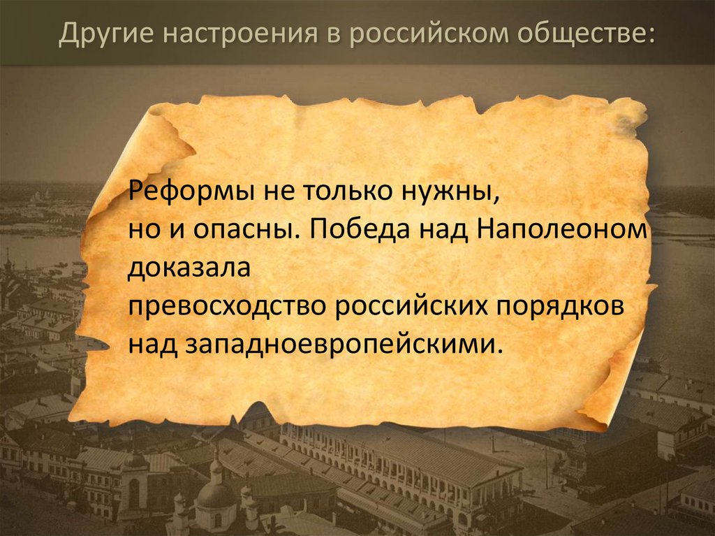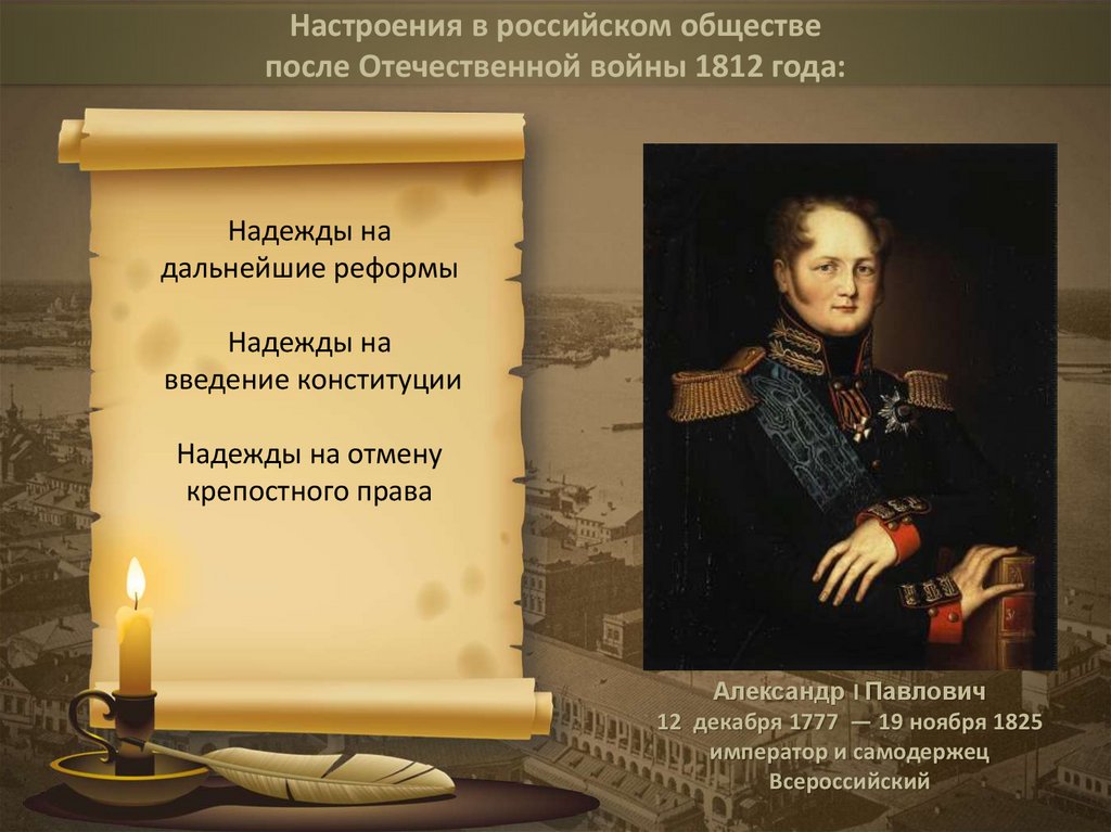 Настроения в российском обществепосле Отечественной войны 1812 года: