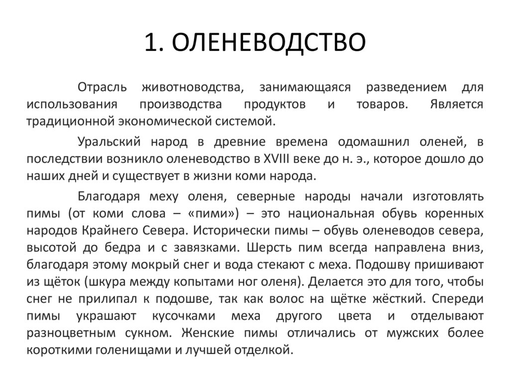 1. ОЛЕНЕВОДСТВООтрасль животноводства, занимающаяся разведением для