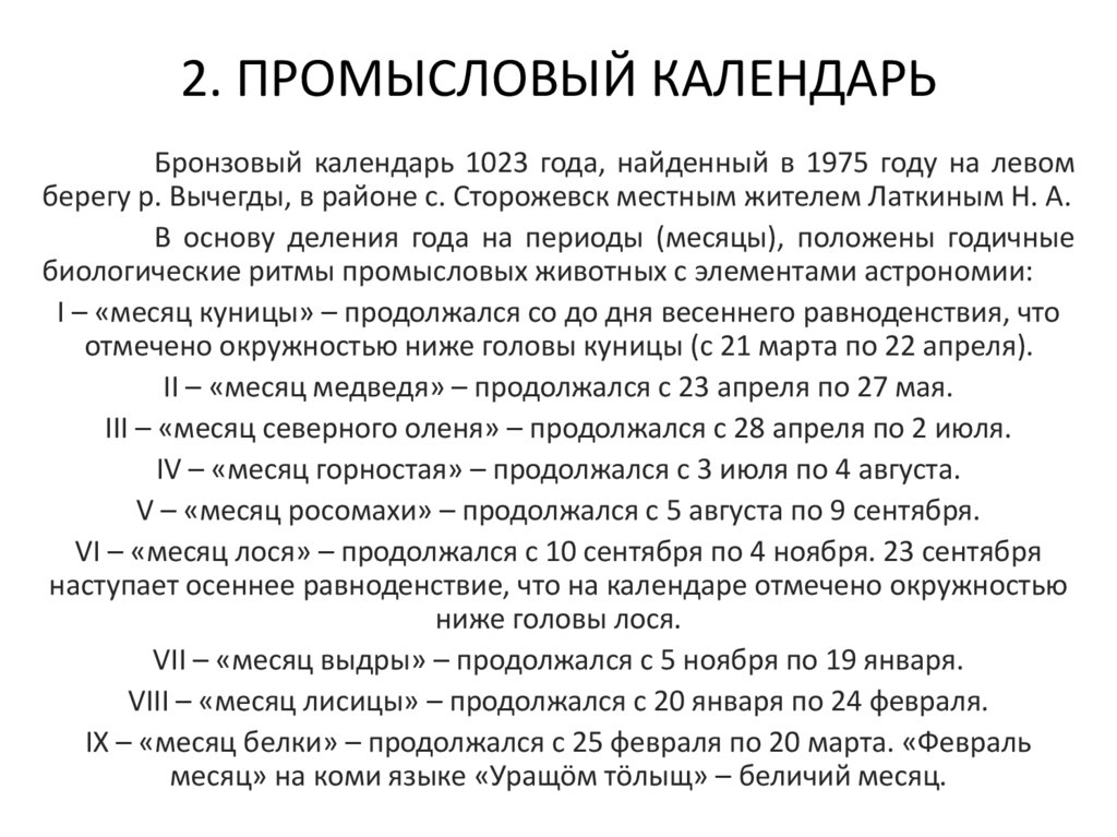 2. ПРОМЫСЛОВЫЙ КАЛЕНДАРЬБронзовый календарь 1023 года, найденный в 1975 году на левом