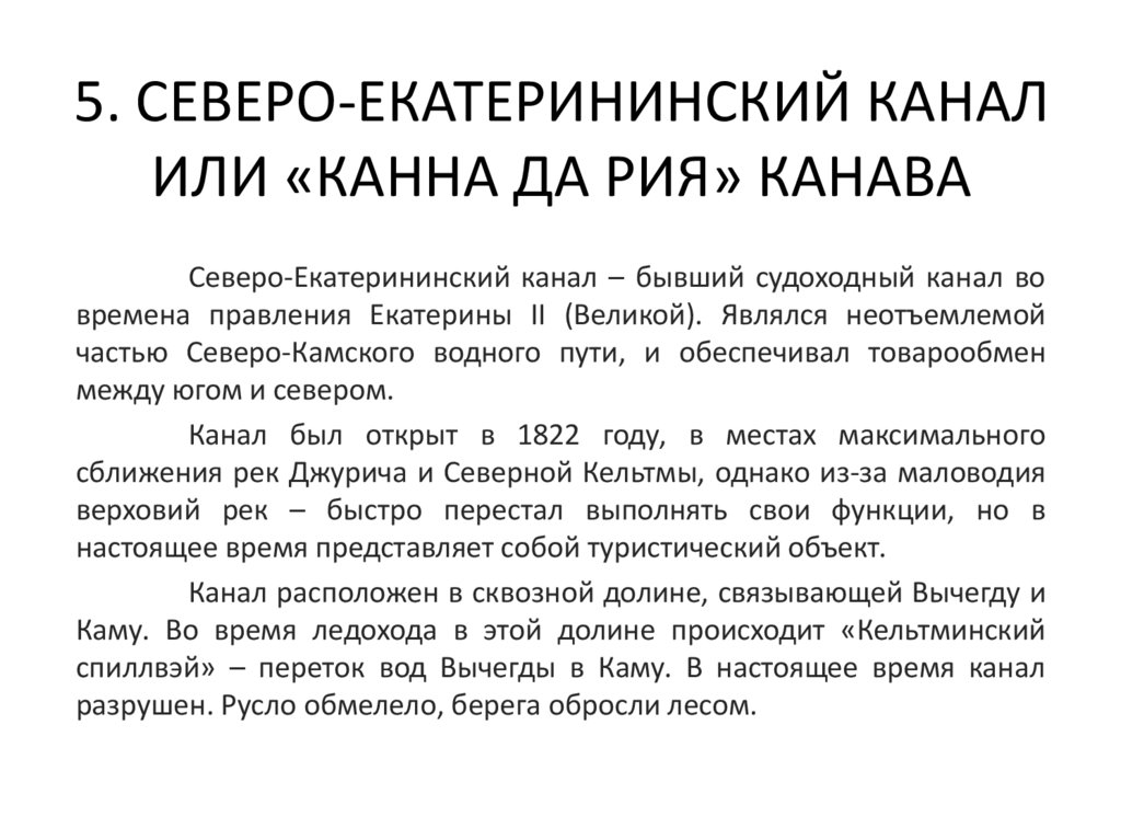 5. СЕВЕРО-ЕКАТЕРИНИНСКИЙ КАНАЛИЛИ «КАННА ДА РИЯ» КАНАВА