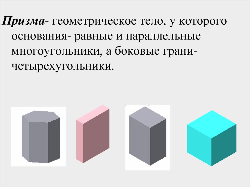 Призма- геометрическое тело, у которогооснования- равные и параллельные