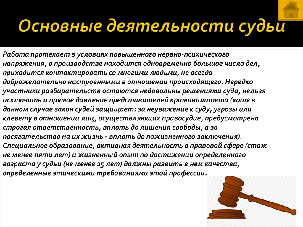 Основные виды деятельности судьи