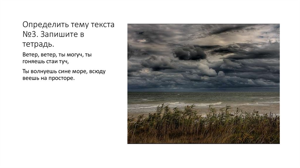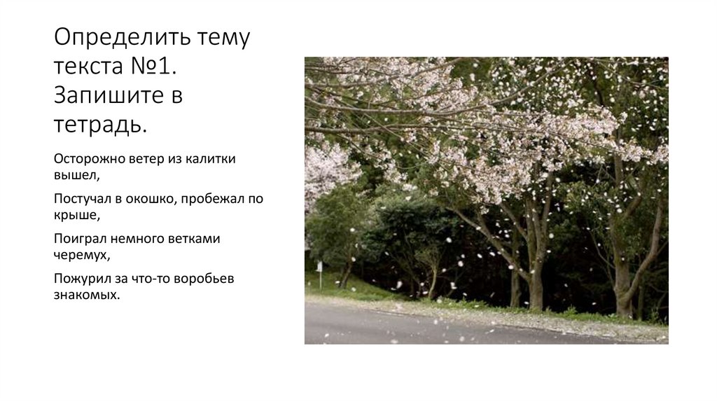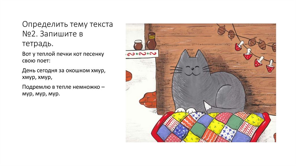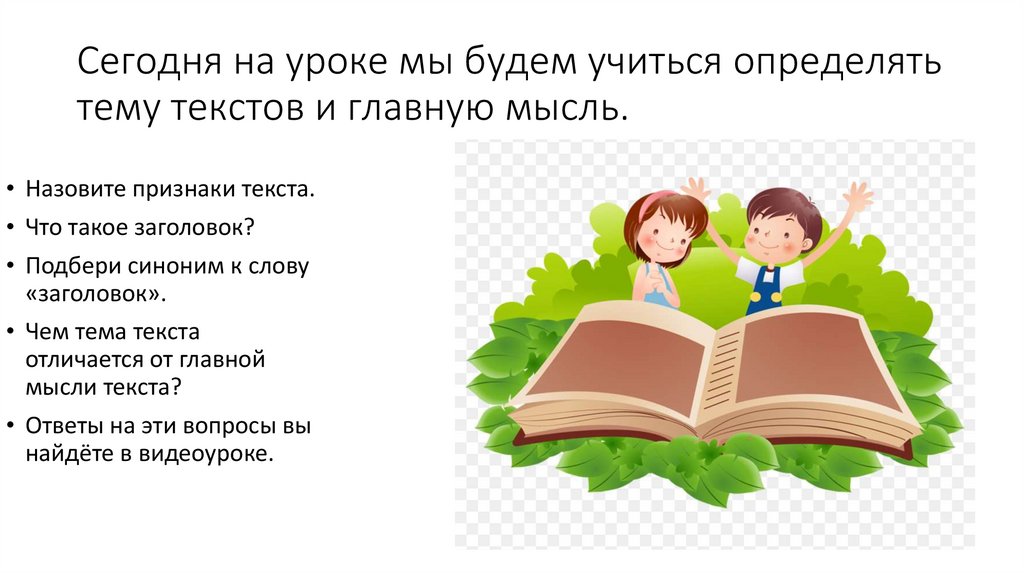 Сегодня на уроке мы будем учиться определятьтему текстов и главную мысль.