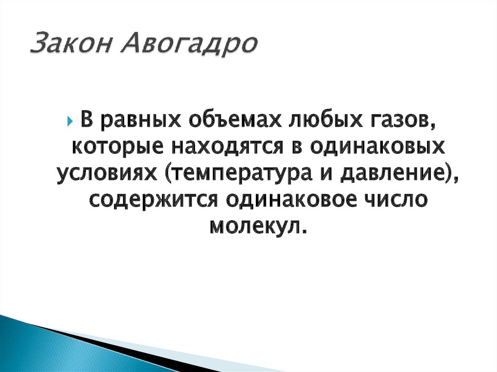 1 моль любого газа при одинаковыхусловиях занимает одинаковый объем.