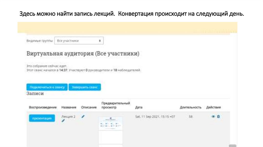 Здесь можно найти запись лекций. Конвертация происходит на следующий день.2.