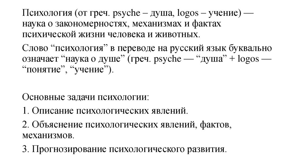 означает “наука о душе” (греч. psyche — “душа” + logos —