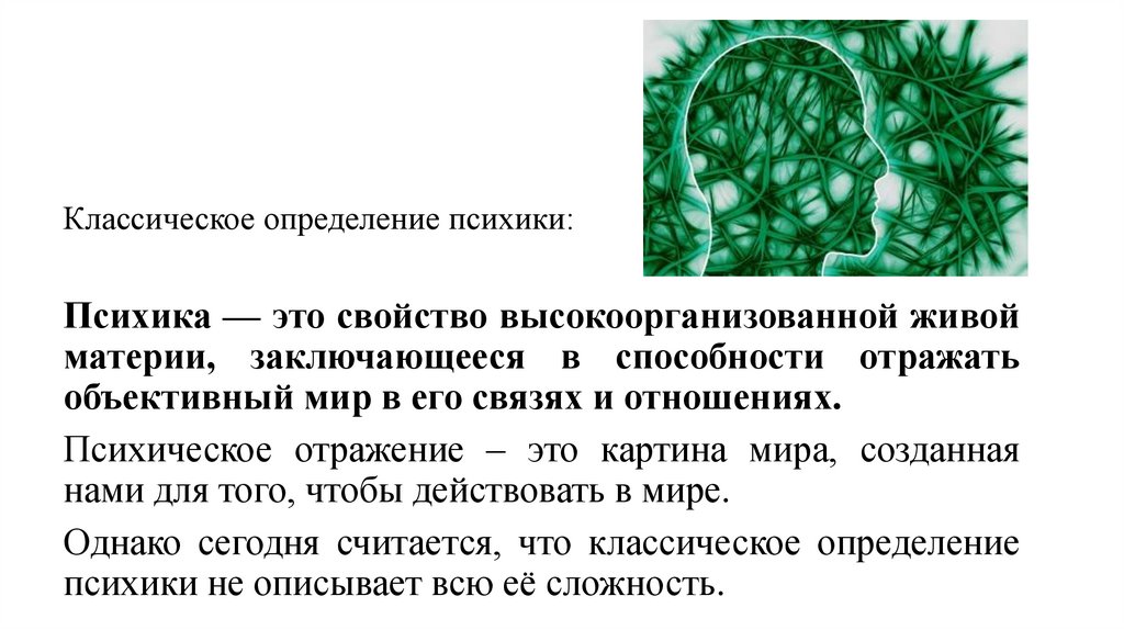 Классическое определение психики:Психика — это свойство высокоорганизованной живой