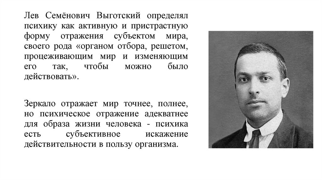 Лев Семёнович Выготский определялпсихику как активную и пристрастную