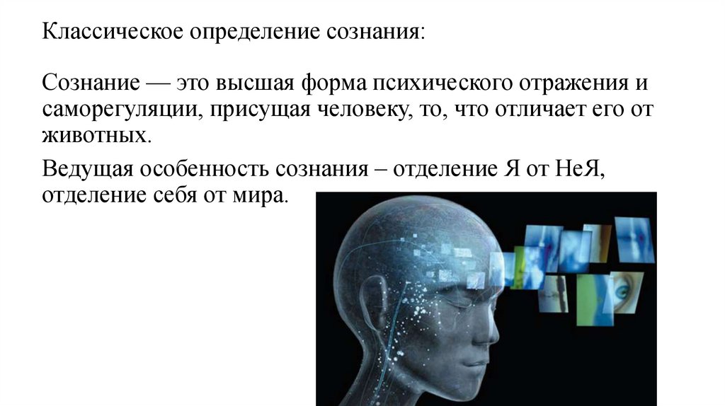 Классическое определение сознания:Сознание — это высшая форма психического отражения и