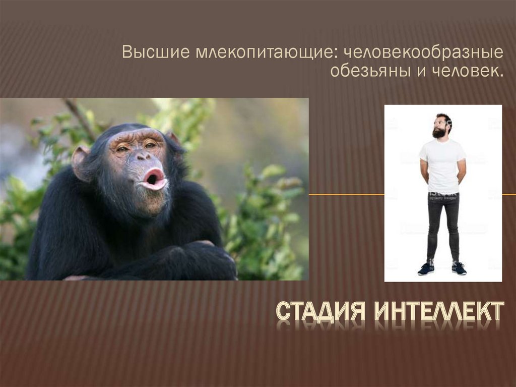 Высшие млекопитающие: человекообразныеобезьяны и человек.
