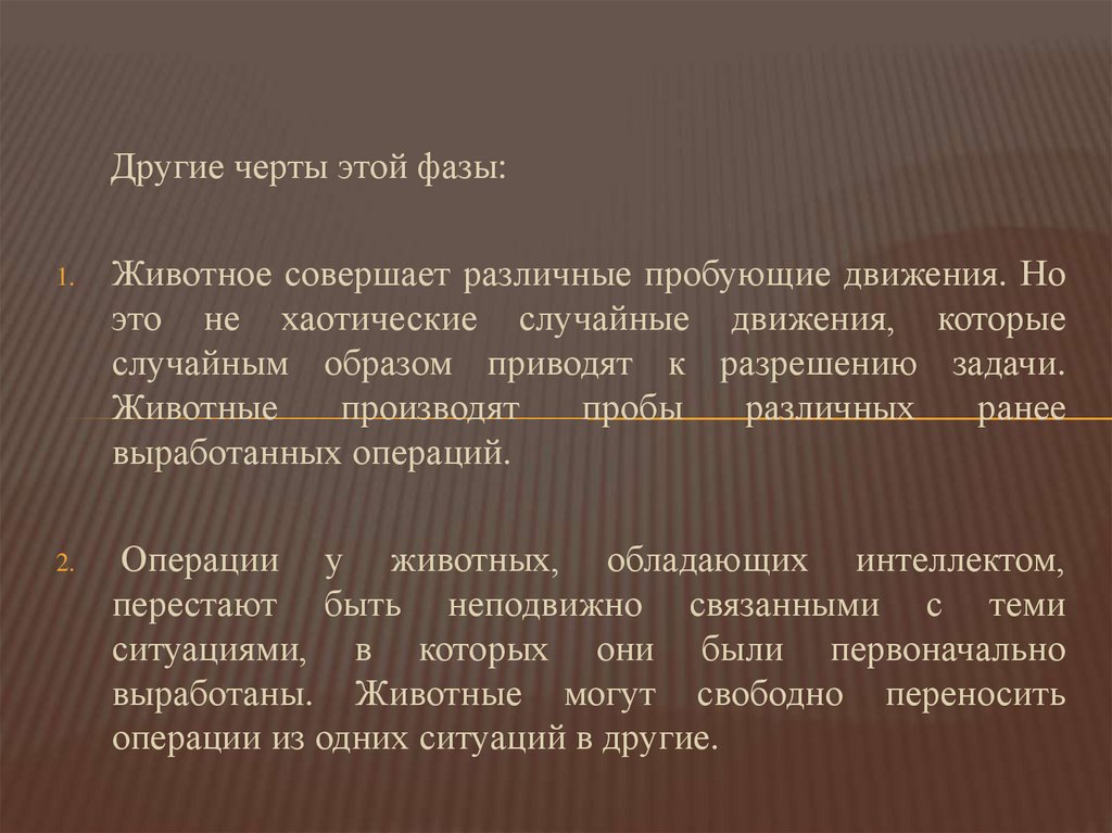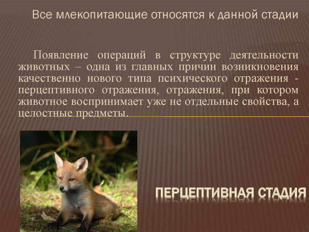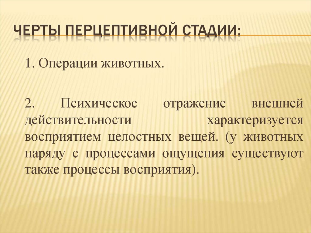 ЧЕРТЫ ПЕРЦЕПТИВНОЙ СТАДИИ:1. Операции животных.