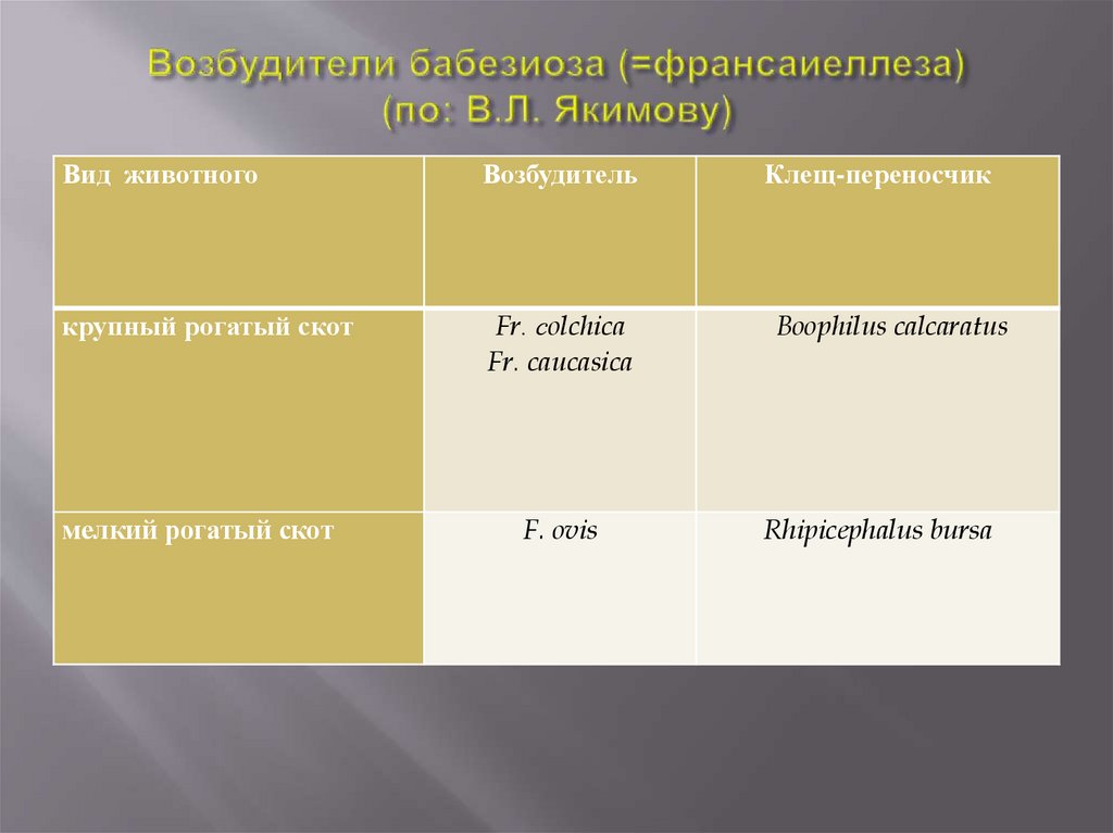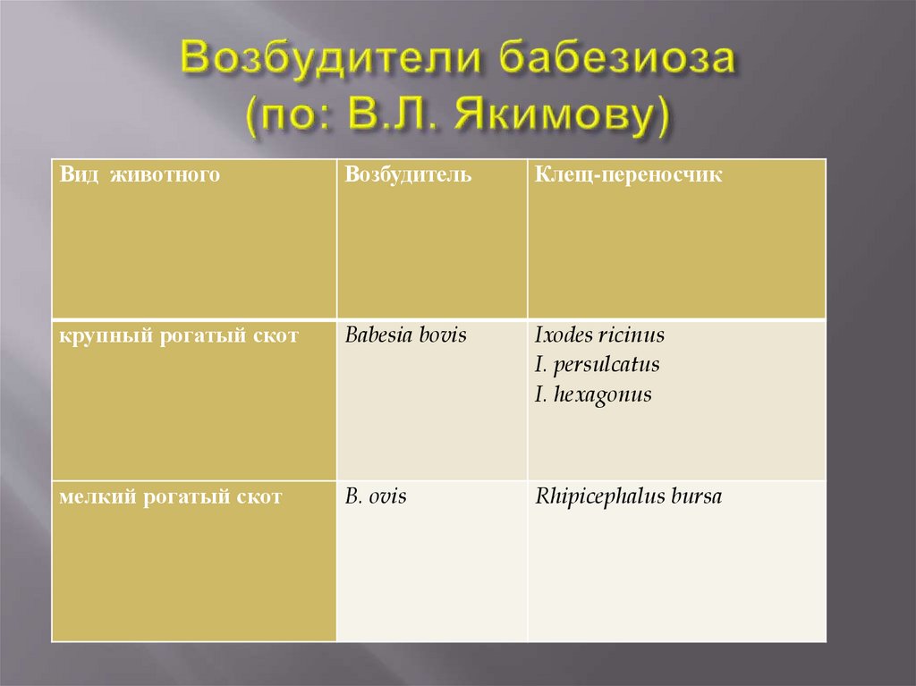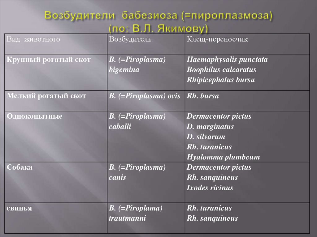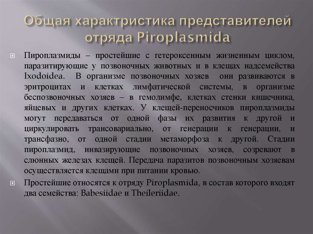 яйцевых и других клетках. У клещей-переносчиков пироплазмиды