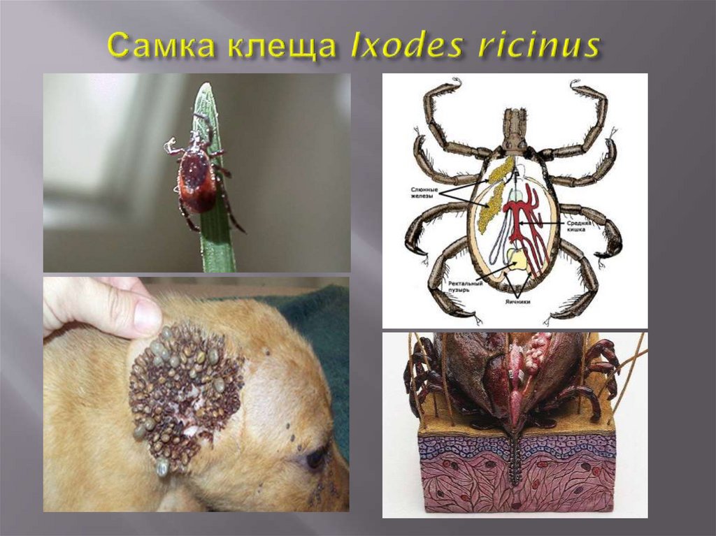 слюнных железах клещей. Передача паразитов позвоночным хозяевам