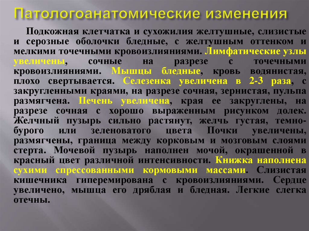 патологоанатомических изменений (желтушность тканей,