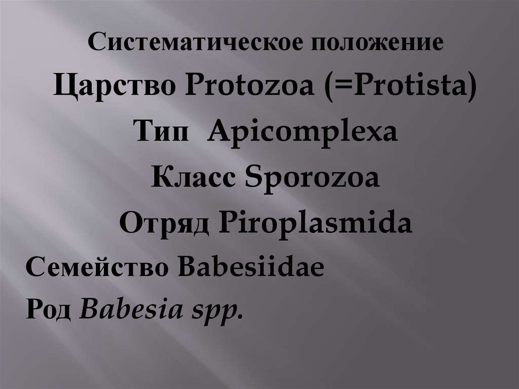 Простейшие относятся к отряду Piroplasmida, в состав которого входят