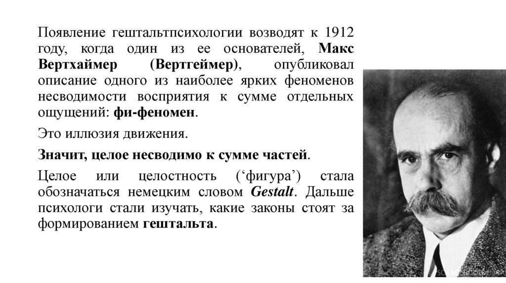 Появление гештальтпсихологии возводят к 1912году, когда один из ее основателей, Макс