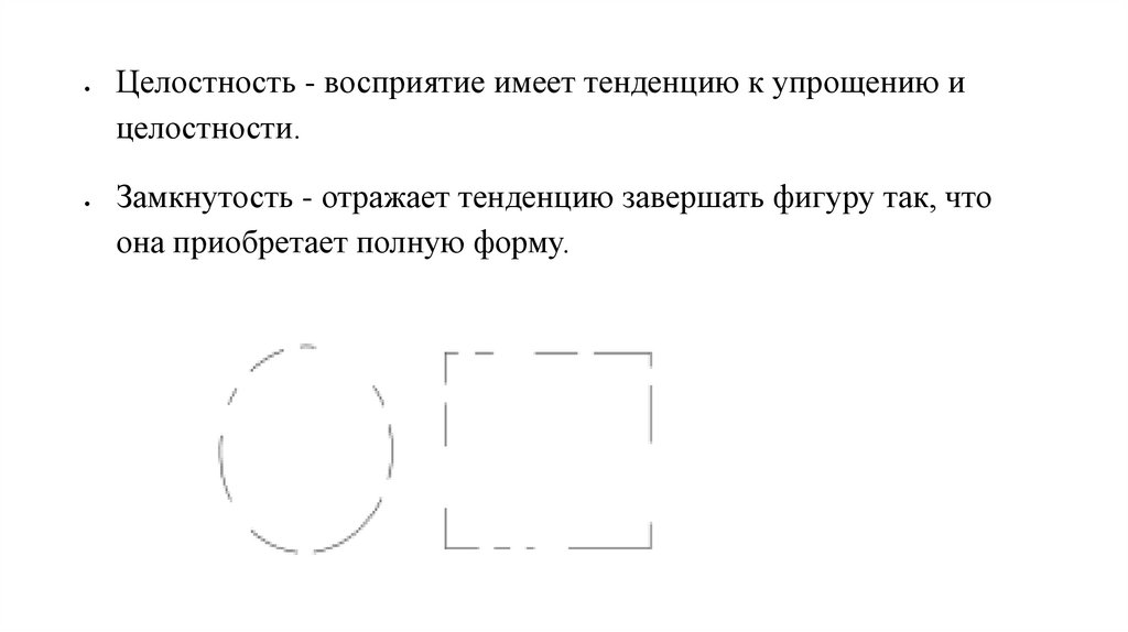 Целостность - восприятие имеет тенденцию к упрощению ицелостности.