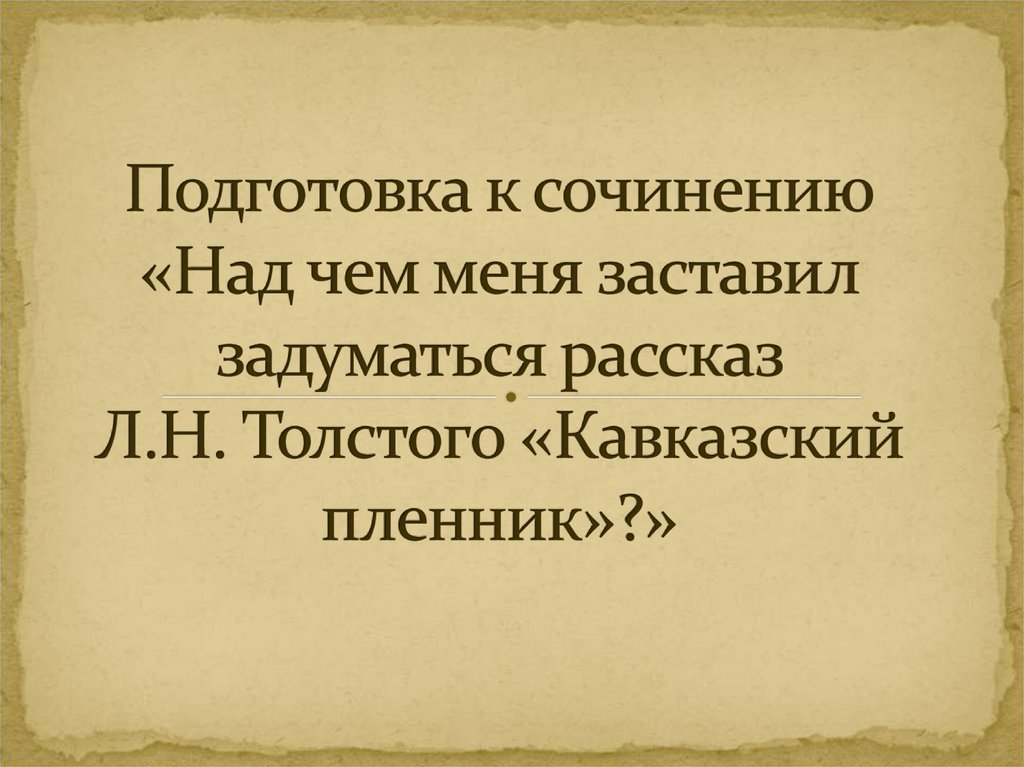1. Подготовка к сочинению «Над чем меня заставил задуматься рассказ Л.Н. Толстого «Кавказский пленник»?»