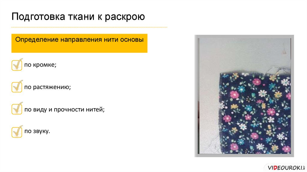 Подготовка ткани к раскроюОпределение направления нити основы