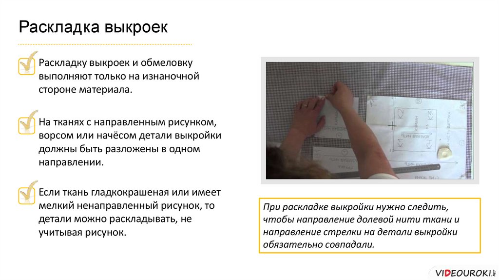 При раскладке выкройки нужно следить,