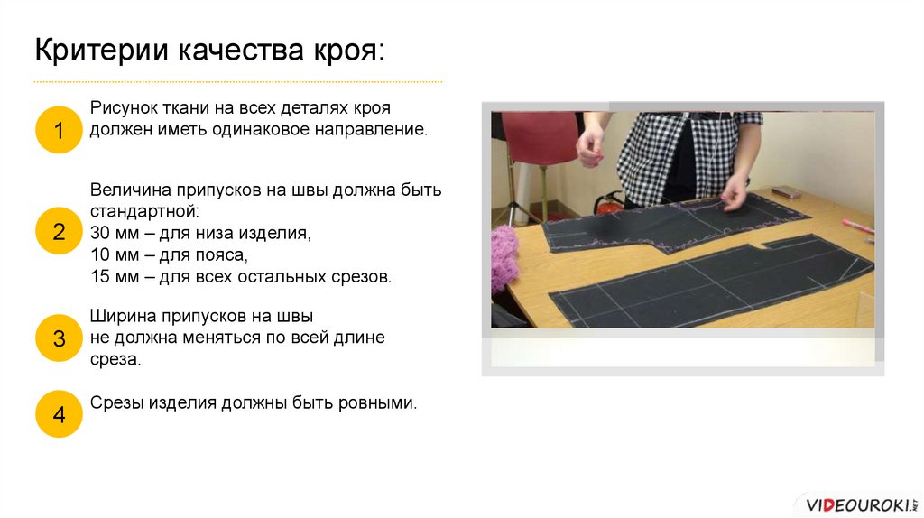Критерии качества кроя:1