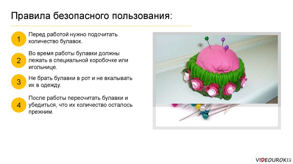 После работы пересчитать булавки и