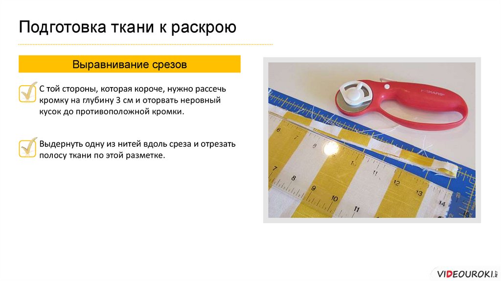 Подготовка ткани к раскроюВыравнивание срезов
