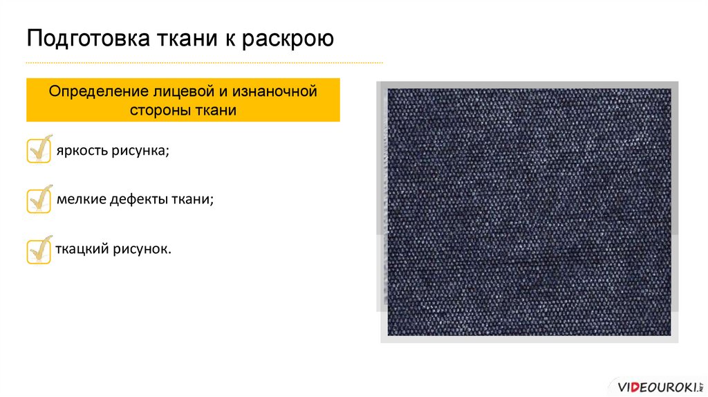 Подготовка ткани к раскроюОпределение лицевой и изнаночной