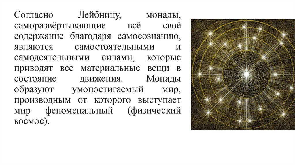 Согласно Г. Лейбницу, «весь универсум состоит единственно из