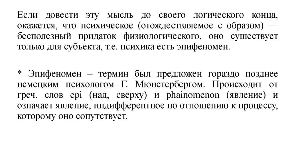 * Эпифеномен – термин был предложен гораздо позднее