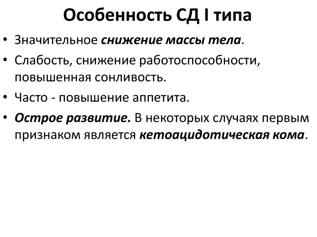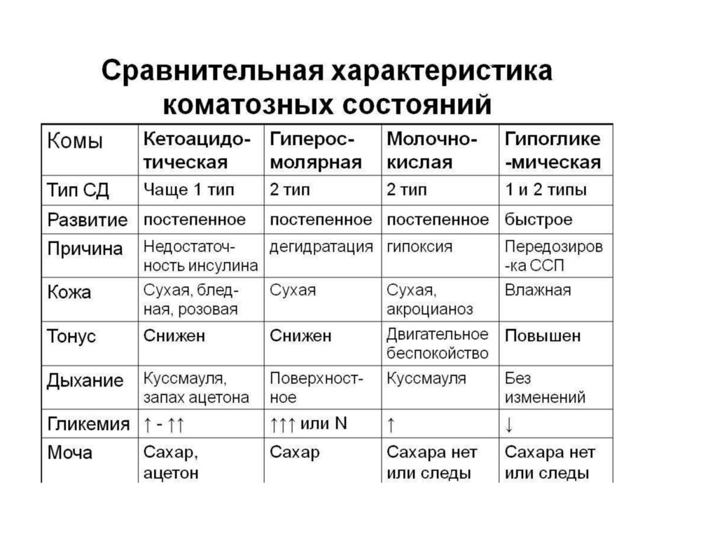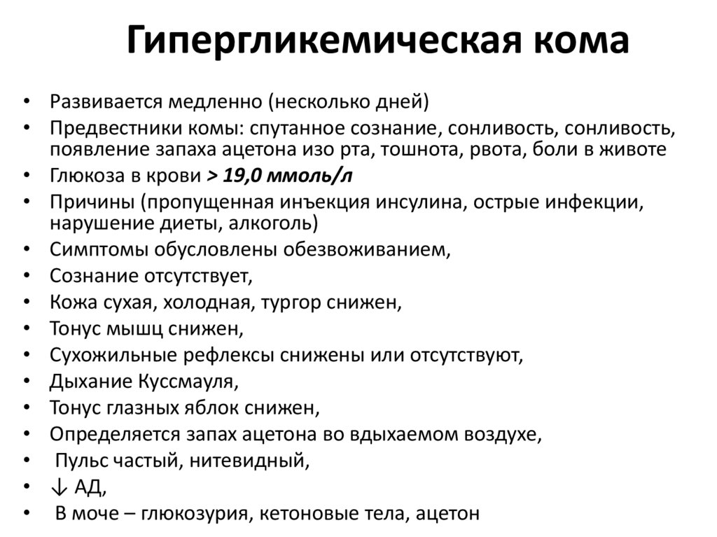 кетоацидоз отсутствует. Возможно наличие ретинопатии 1