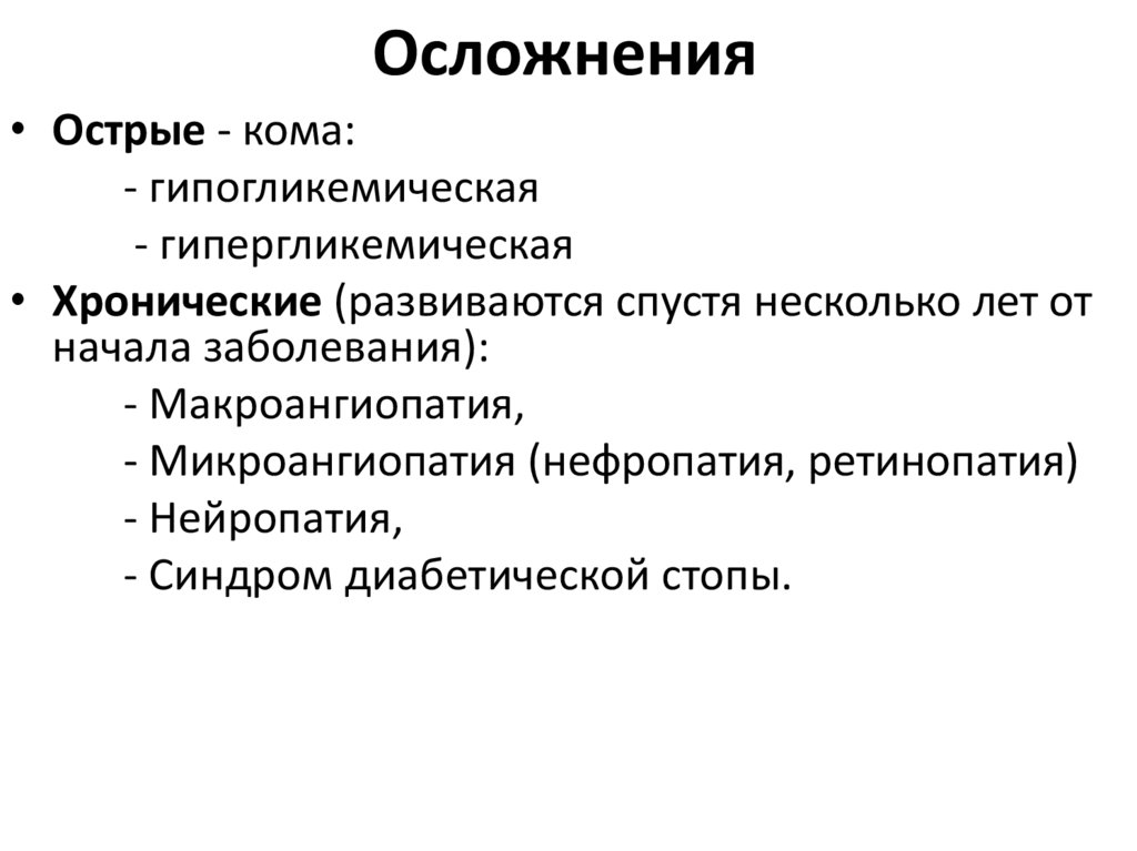 язвами, гангреной, утратой зрения, ХПН и др.