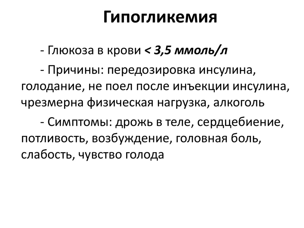 гипогликемии, кетоацидозу, уровень сахара крови натощак