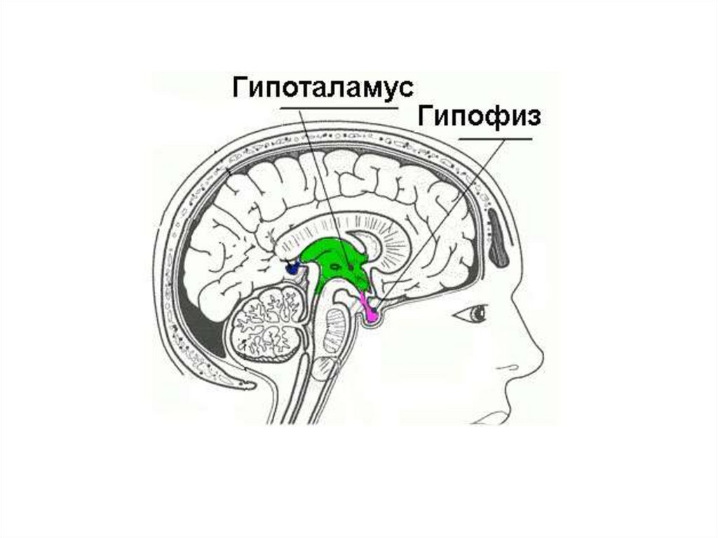 • Гипоталамус регулирует деятельность гипофиза,
