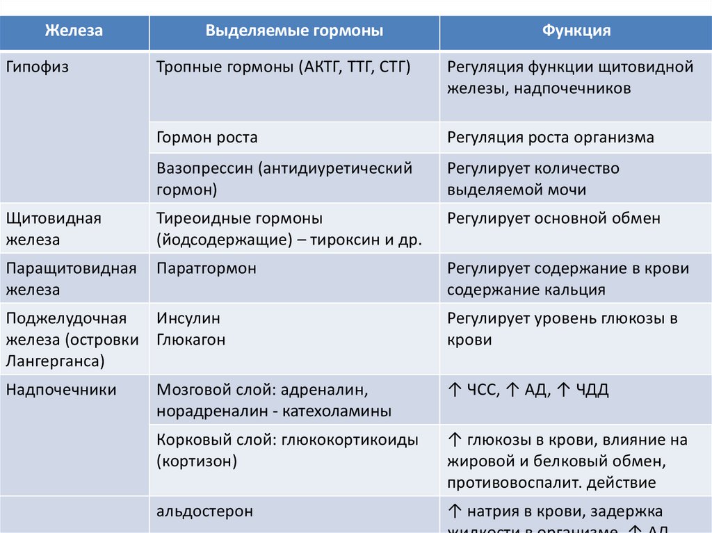 • Деятельность желез внутренней секреции
