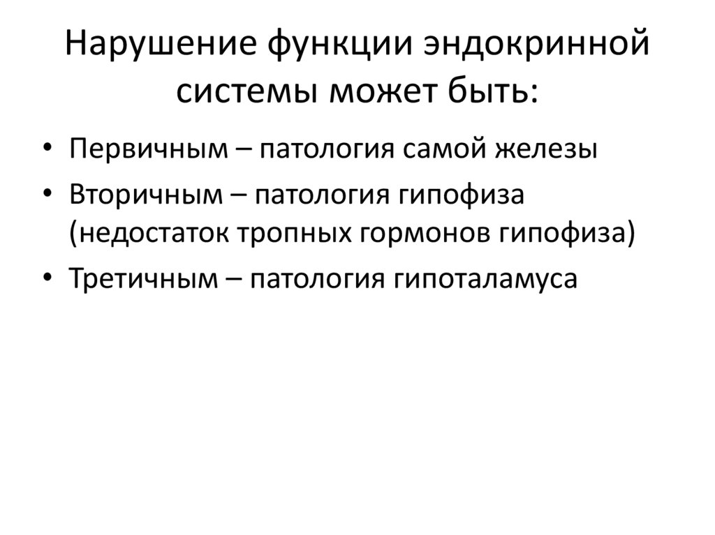• Первичным – патология самой железы