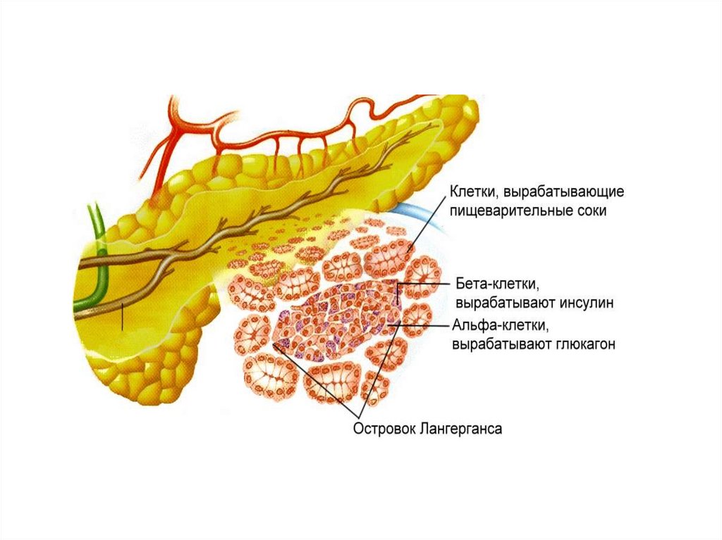 • Инсулин – это гормон, вырабатывающийся бетаклетками островков Лангерганса поджелудочной